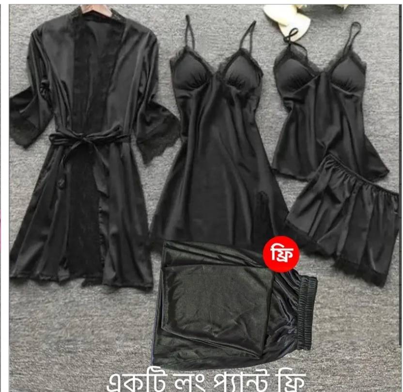 5 Part Night Dress black Lace