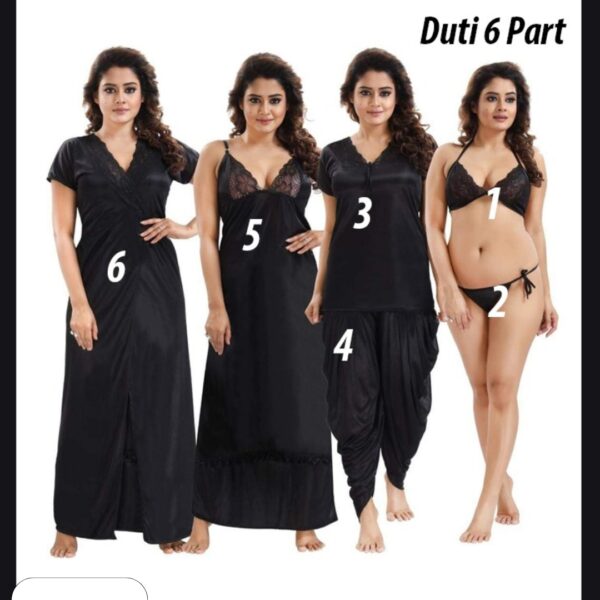 6 Part Dhuti Night Dress Black