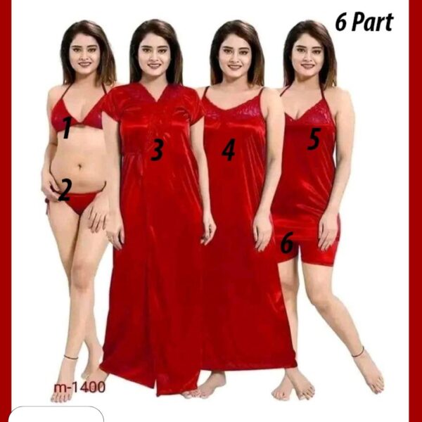 6 Part Night Dress Red