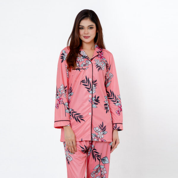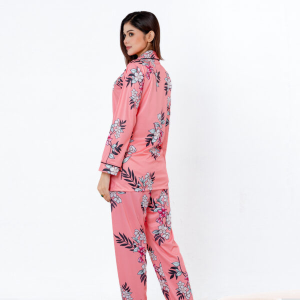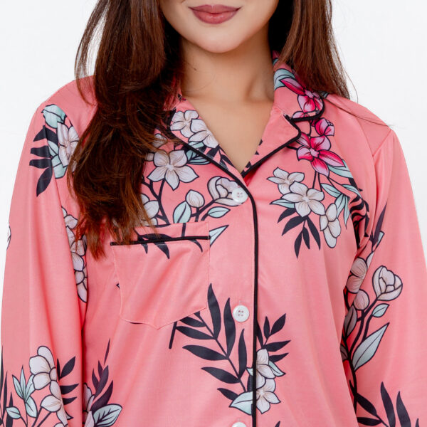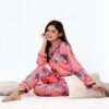 Women’s Luxurious Printed 2 Pcs Satin Night Suit (Pink)